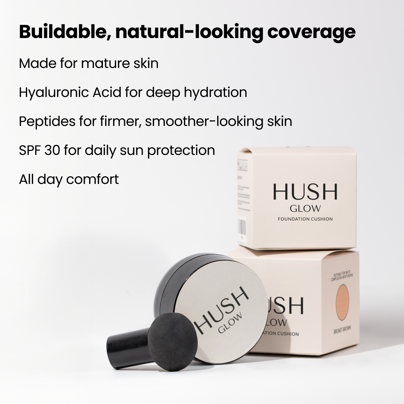 Thousands of women over 50 are switching to the Hush Glow Foundation Cushion for one simple reason—it actually works. No filters, no complicated steps, just smooth, glowy skin that looks like you—only fresher.