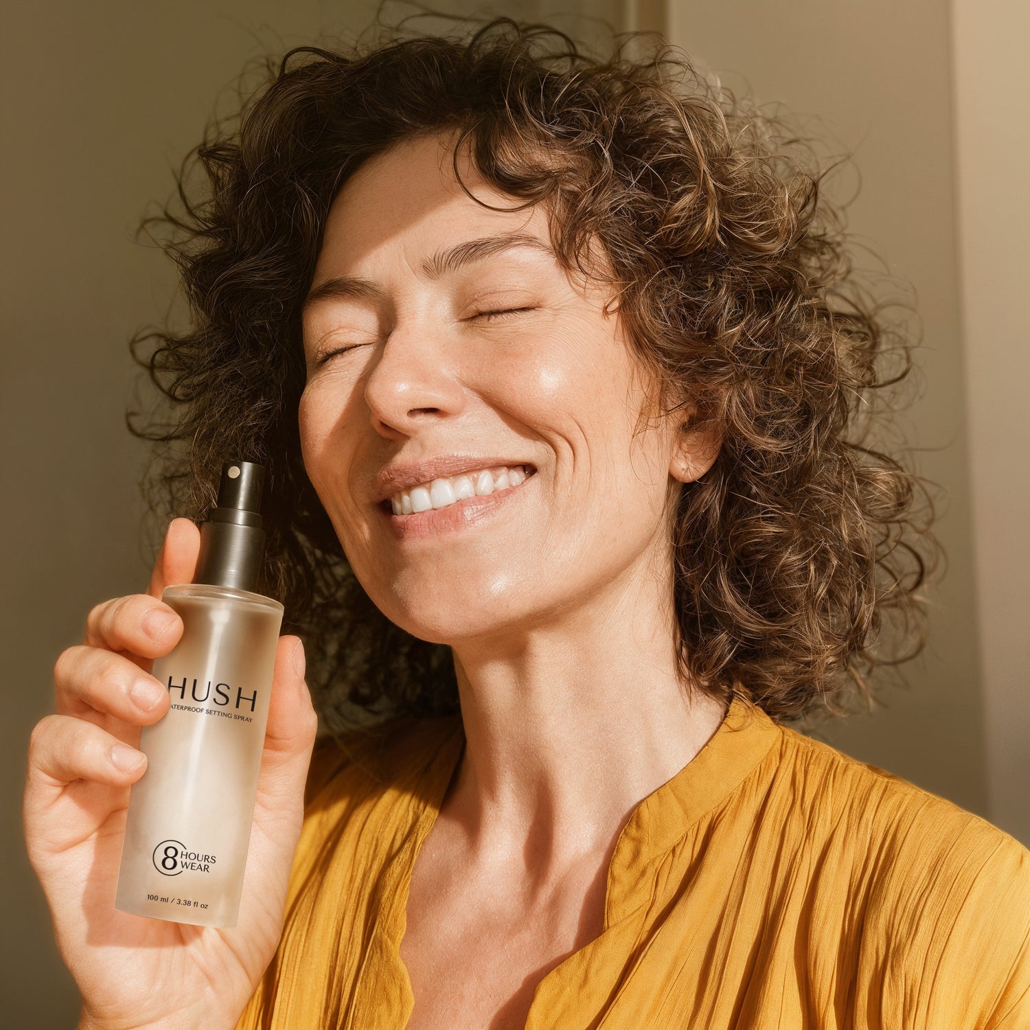 Hold the bottle 8–10 inches away from your face. Close your eyes and spray in an “X” and “T” motion. This gives you light, even coverage.